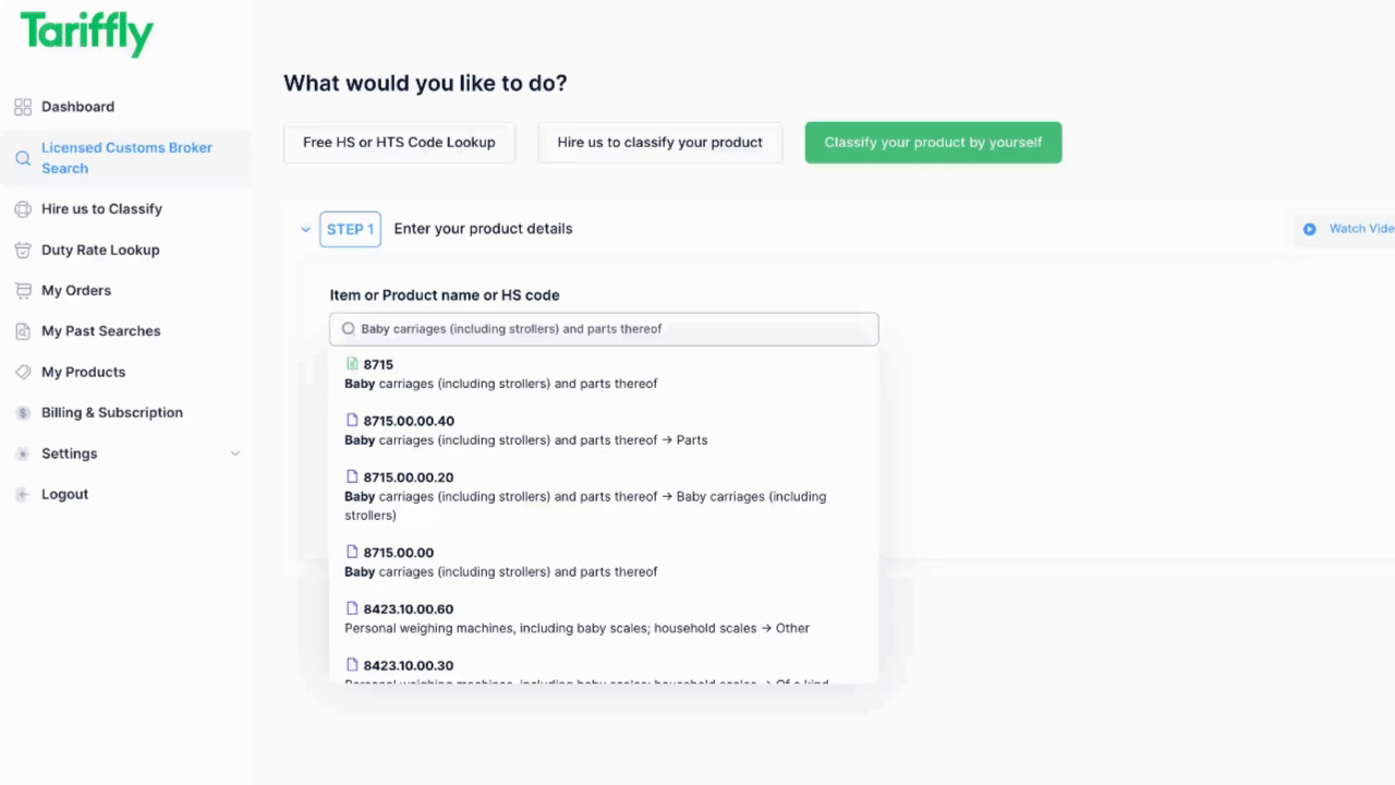 As soon as you begin entering your product information, Tariffly's Neural AI technology suggests relevant keywords and synonyms, then instantly matches your entry to the perfect HTS codes.