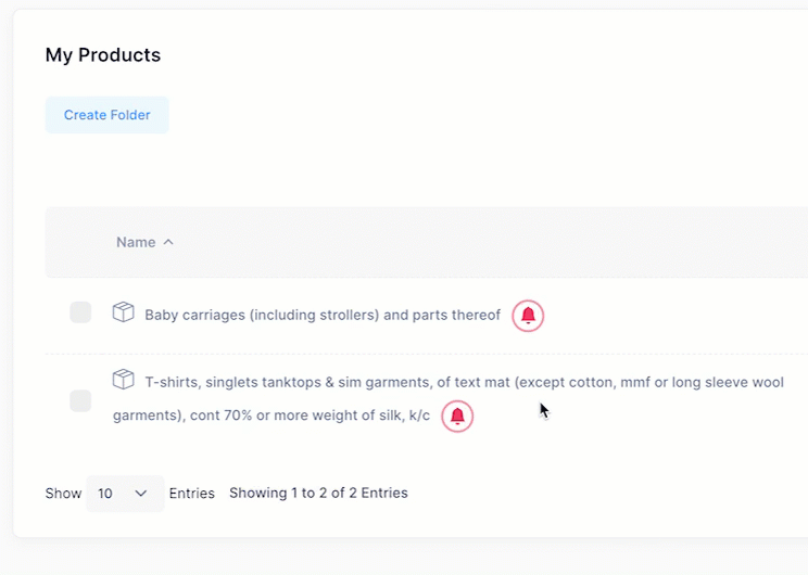 Tariffly automatically keeps track of your tariff codes and sends you notifications for any changes in duty rates, compliance alerts, suffixes, and rulings. Never miss important updates again.
