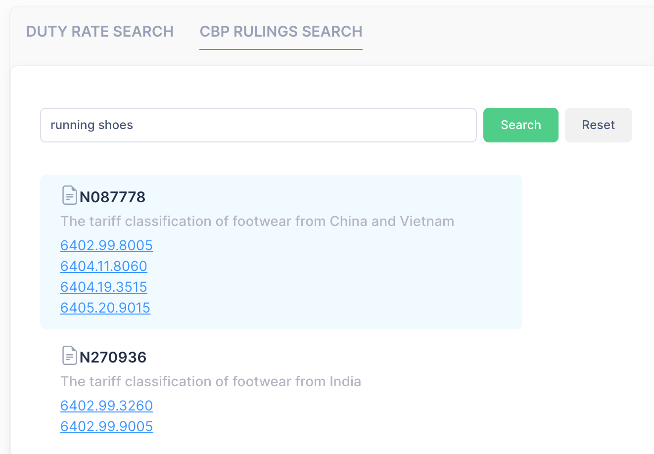 Spending hours reading through hundreds of rulings just to find the relevant one is now a thing of the past. Simply enter your item keywords and watch Tariffly read through thousands of rulings and shortlist the most relevant ones for your approval. Just like that!